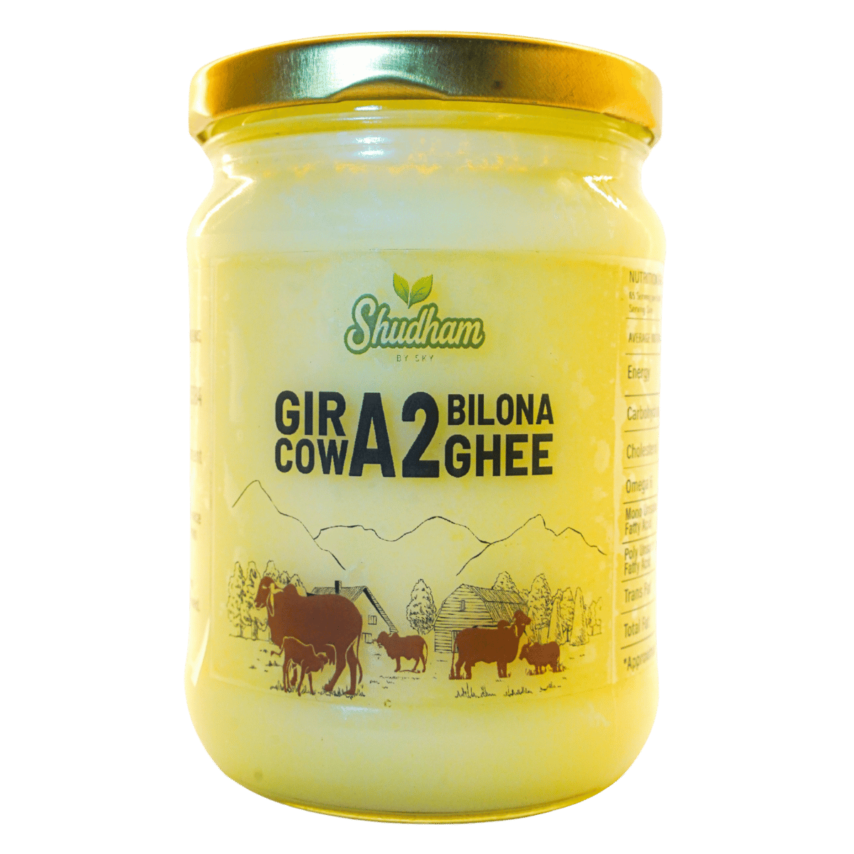 Pure Gir Cow A2 Bilona Ghee hand-churned using the traditional bilona method. Made from A2 milk of grass-fed Gir cows, slow-cooked to preserve aroma, nutrition & golden richness. Perfect for Ayurveda, immunity, digestion & daily cooking.